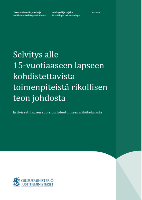 Selvitys alle 15-vuotiaaseen lapseen kohdistettavista toimenpiteistä rikollisen teon johdosta – Erityisesti lapsen suojelun toteutumisen näkökulmasta -selvitykseen pääset tästä: